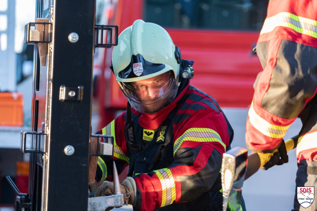 Au programme, quatre chantiers! L’un d’entre eux leur a permis de (re)découvrir le nouvel outil de force mise à disposition par l’ECA, l’Halligan. Couplé à une hache, cet outil très polyvalent, a encore plus de force de pénétration dans de nombreuses situations et rend la première attaque sur des portes lourdes nettement plus simple et plus rapide. Son utilisation doit se faire en binôme, nécessitant une bonne coordination entre les deux sapeurs.