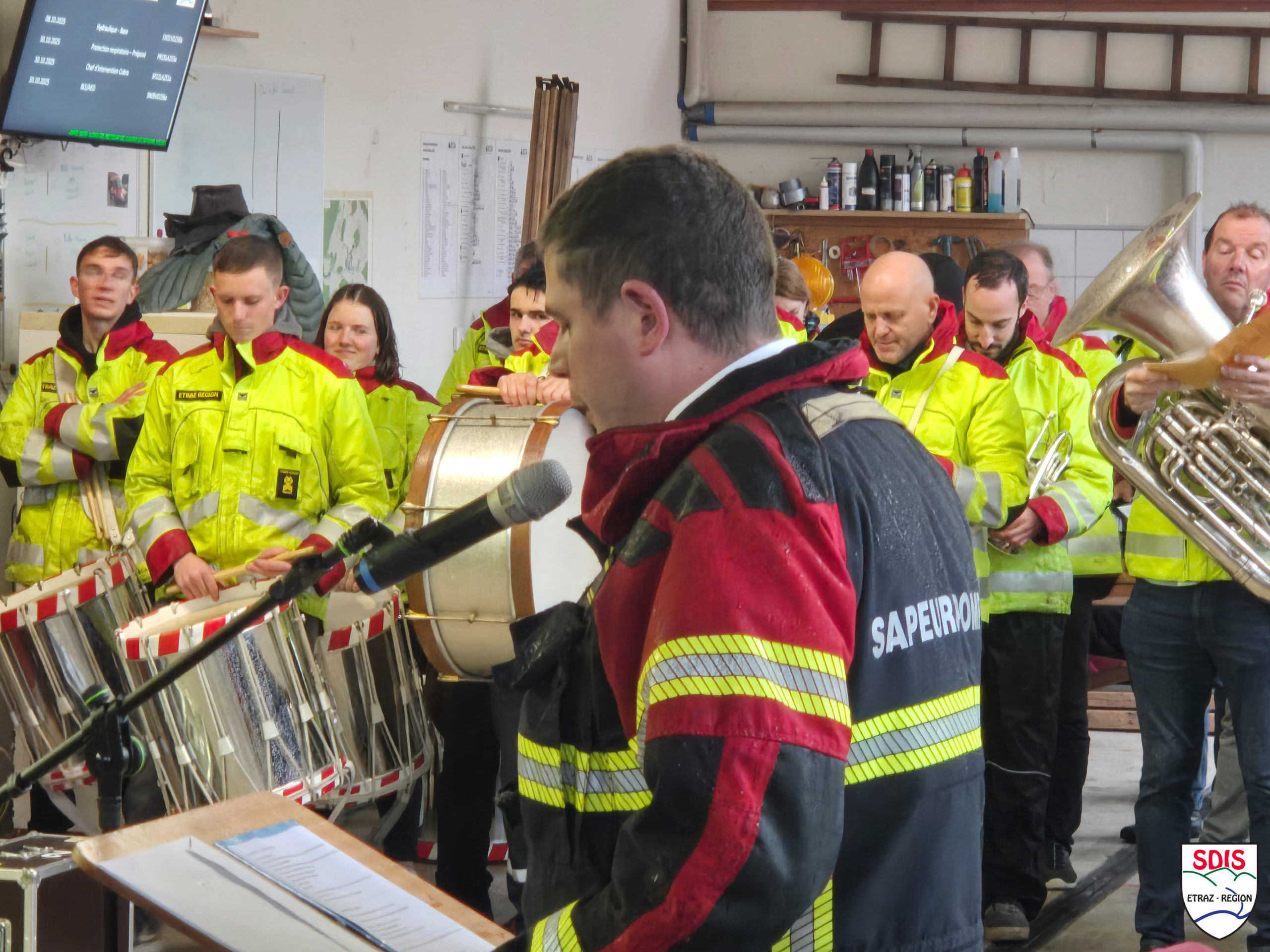 À 16h15, le cortège qui a traversé le village en fanfare a rassemblé l’ensemble de la flotte de véhicules engagés dans les différents exercices ainsi que l’ensemble des sapeurs-pompiers du DPS présents. La partie officielle s’est ouverte à 16h30 – exceptionnellement déplacée à l’intérieur de la caserne, entièrement vidée pour l’occasion et accueillir le bataillon, la fanfare et les invités – a permis au chef de centre, le premier lieutenant Joël Jaquier, de présenter son rapport et revenir sur les interventions menées durant l’année, les exercices réalisés et l’ensemble des activités du corps. Présent également, le capitaine Moreno Pimpinella, membre de l’état-major du SDIS, a pris la parole et salué l’engagement et le professionnalisme des sapeurs. S’en sont suivis les remerciements du chef de centre, adressés aux autorités, aux acteurs impliqués dans l’organisation de la revue, aux sapeurs pour leur engagement constant, ainsi qu’aux cadres du DPS pour leur travail et leur soutien indéfectible. Les lauréats des concours de l’année ainsi que les jubilaires ont été mis à l’honneur et les vétérans se sont vu remettre des diplômes.