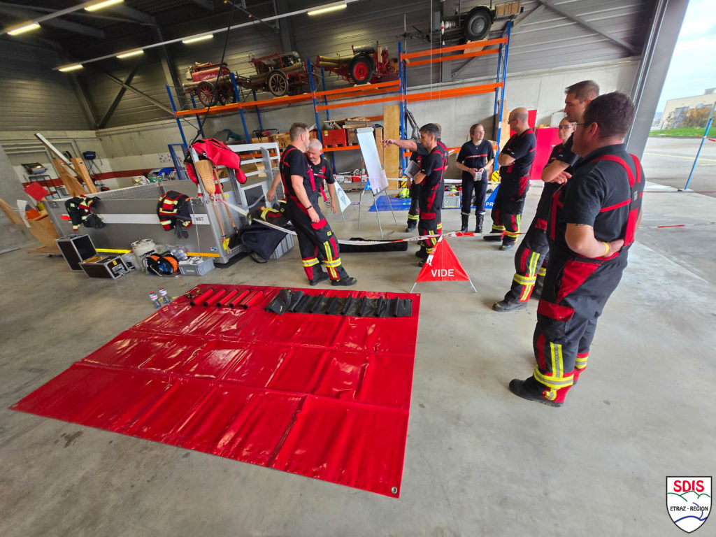 Le dernier poste concernait le montage d’une place APR (appareil de protection respiratoire), indispensable lors d’un renfort régional. Cette emplacement permet l’échange des bouteilles vides par des pleines, ainsi que le passage par le SSO (soutien sanitaire opérationnel) pour un contrôle médical avant de retourner au feu.